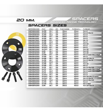 SET SEPARADORES OMP SPEED 20MM 4X108 65.1 M12X1.25